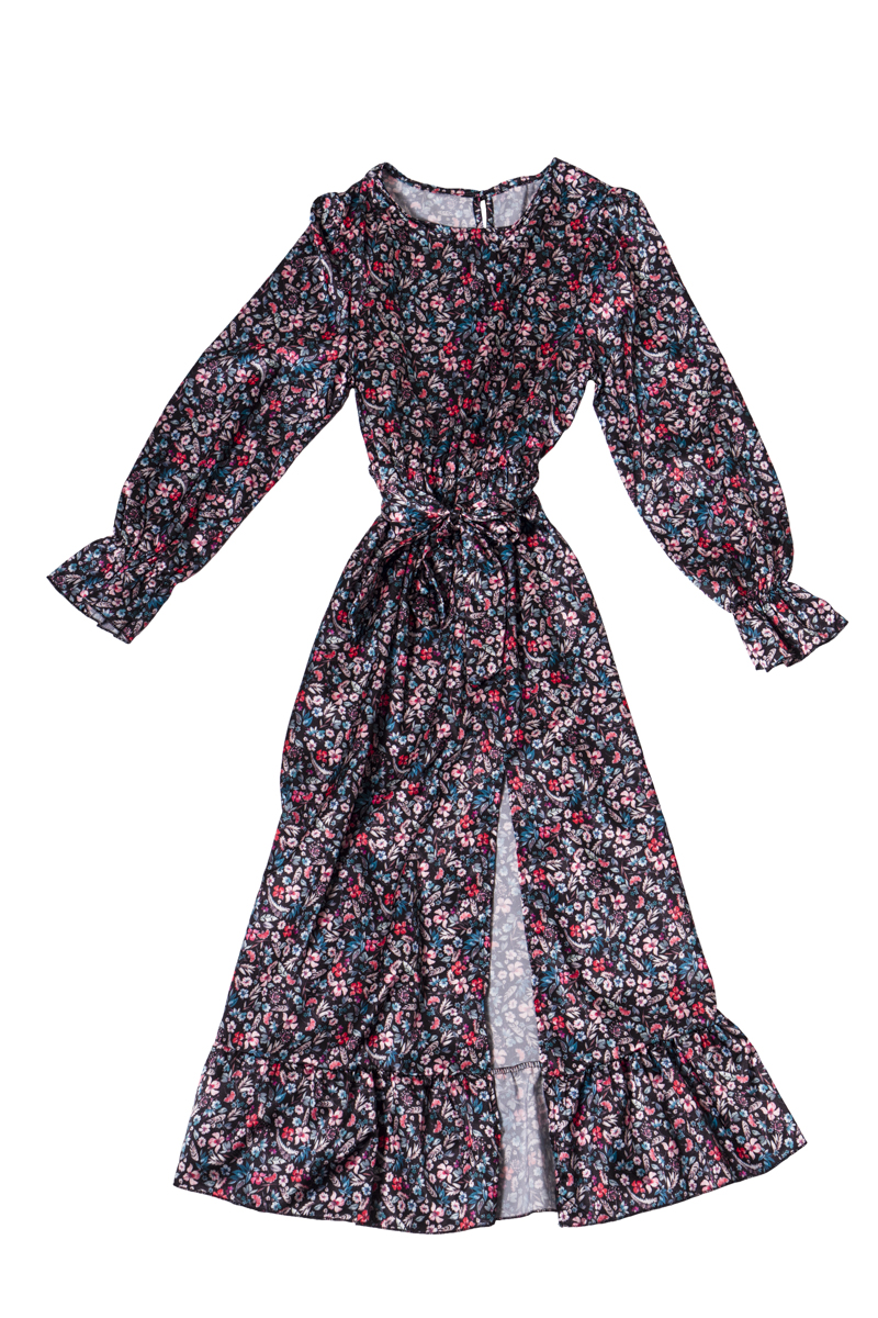 Flower Black Long Dress